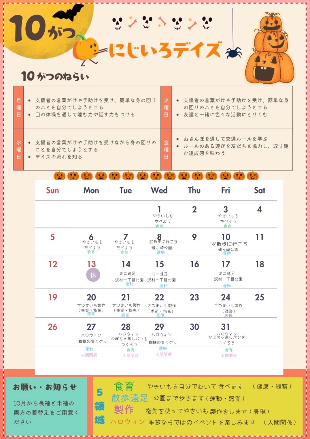 ・今日の振り返り、次回の予定確認などを行います。 - 13:00☆個別にご自宅へ送迎